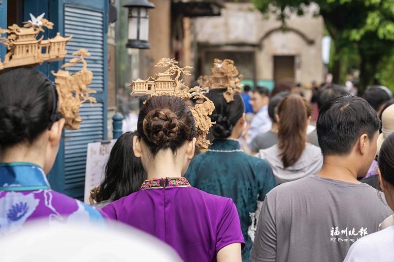更令人瞩目的是福州传统梳妆技艺“三条簪”的出圈。作为市级非遗代表性项目,其蕴含的福州女性“爱国爱家爱己”的精神被深入挖掘,通过邀请知名艺人体验妆造,全网相关话题累计播放量超15亿次,获新华社全版专题报道,带动全国80余座城市的旅拍商家推出相关体验项目。