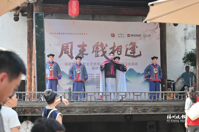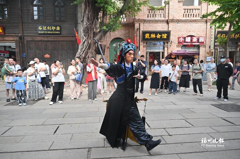 福州市非遗展示馆前,闽剧快闪表演吸引众多游客观赏。 记者 张旭阳 摄