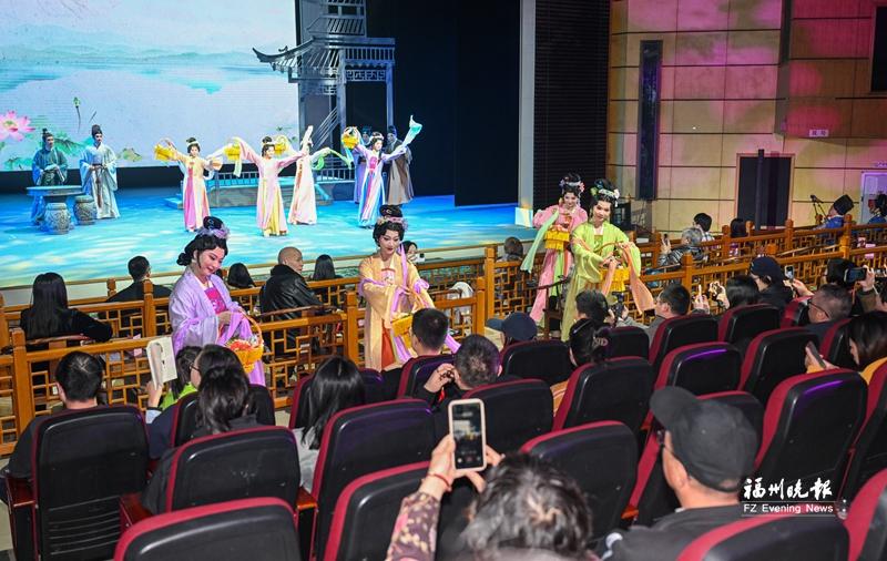 下杭路戏台,游客欣赏闽剧表演。记者 张旭阳 摄