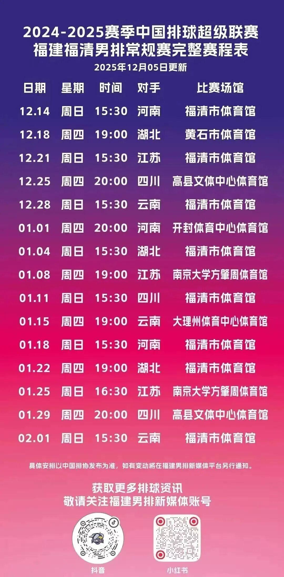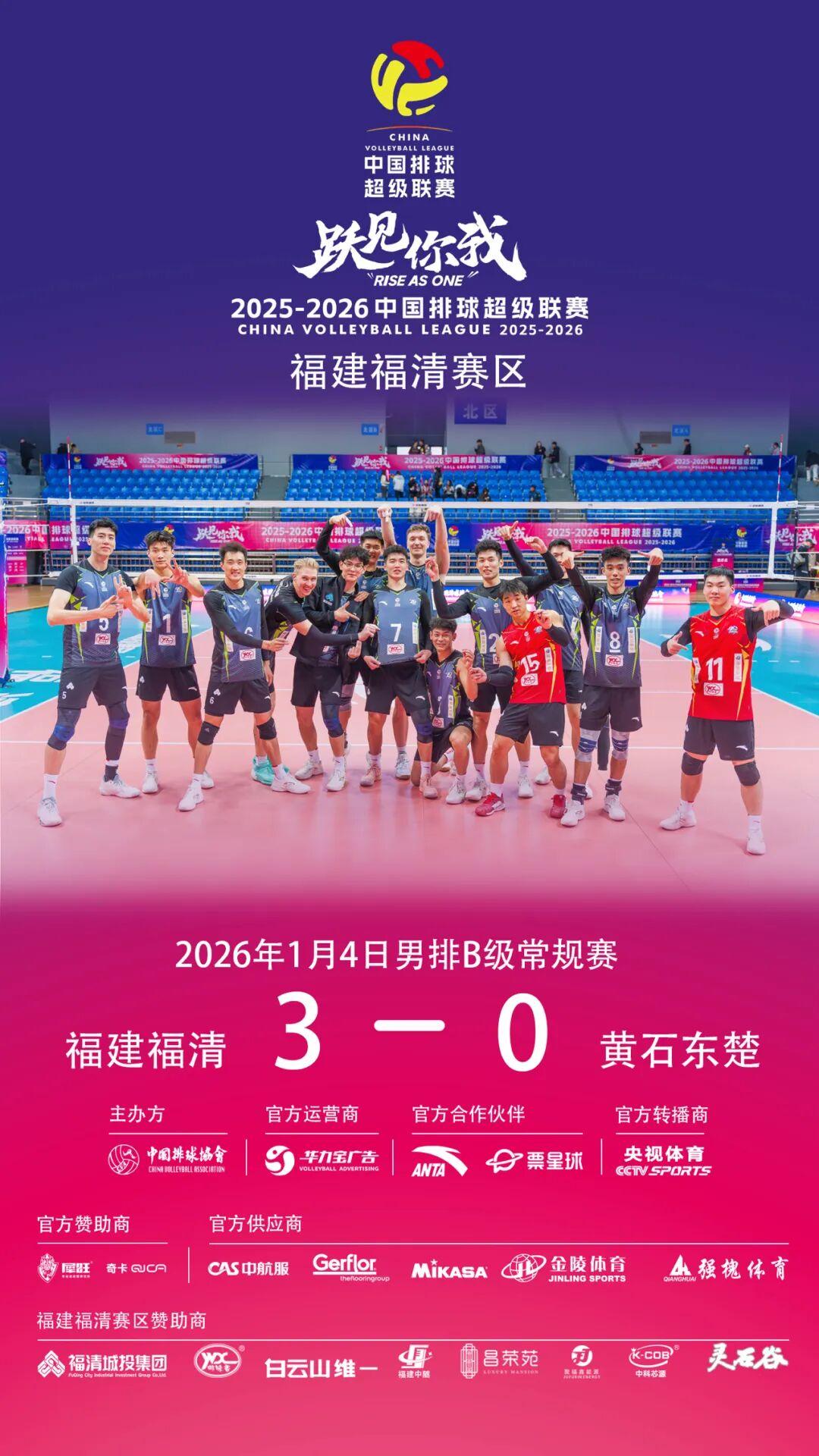 福建福清男排将于1月8日晚19:00