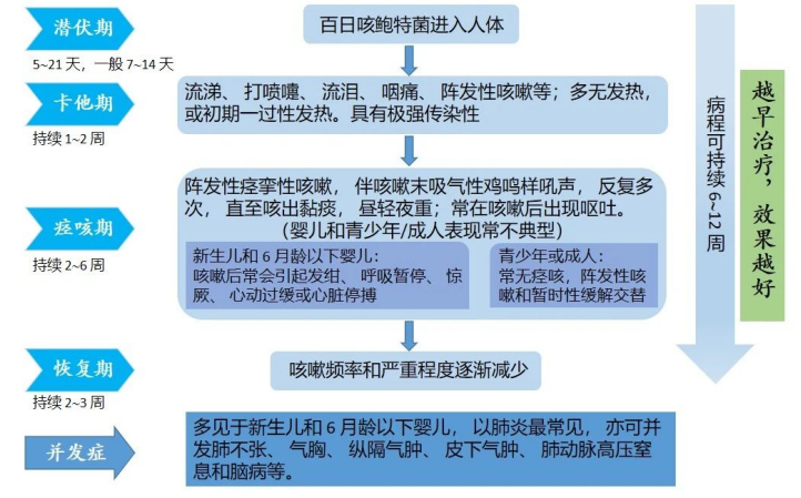 百日咳是由百日咳鲍特菌感染引起的急性呼吸道传染病。典型表现包括阵发性咳嗽、吸入性哮声和咳嗽后呕吐,病程可长达2-3个月,故有百日咳之称。