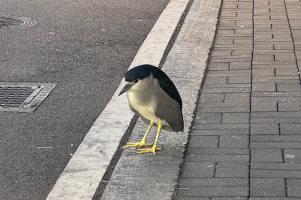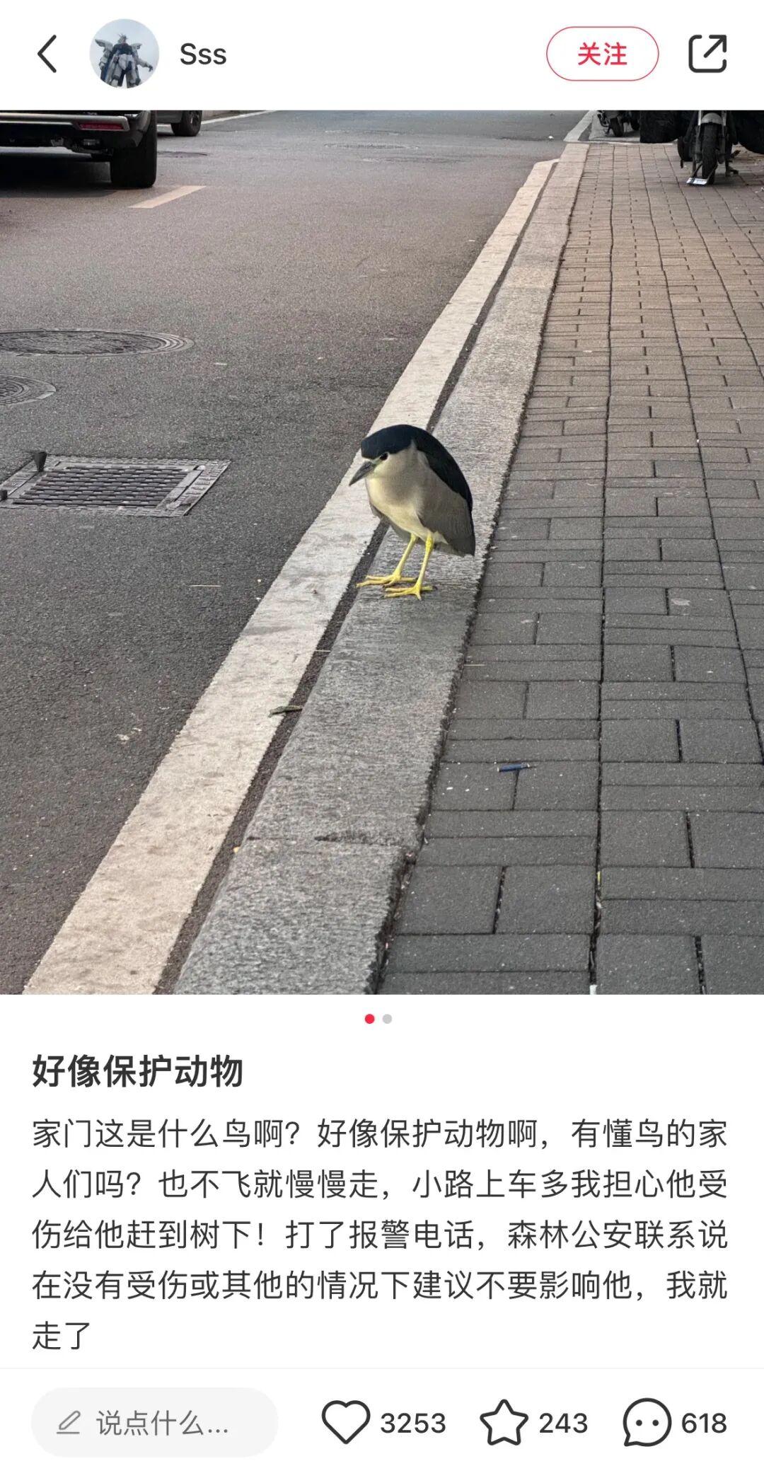 “当事鸟”在马路牙子上