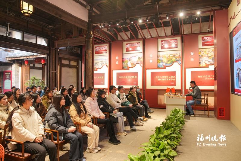 “制定实施中央八项规定,是我们党在新时代的徙木立信之举……”9日下午,福州市50余名青年引进人才在鼓楼区“坊巷讲习所”参加“廉洁首课”,认真聆听市纪委宣讲员对中央八项规定精神的深入解读。随后,市纪委党风室负责人以《忠诚、干净、担当——为加快现代化国际城市建设贡献青春力量》为主题开展专题授课,并与引进人才们进行互动交流,为他们答疑解惑,进一步筑牢廉洁思想根基。