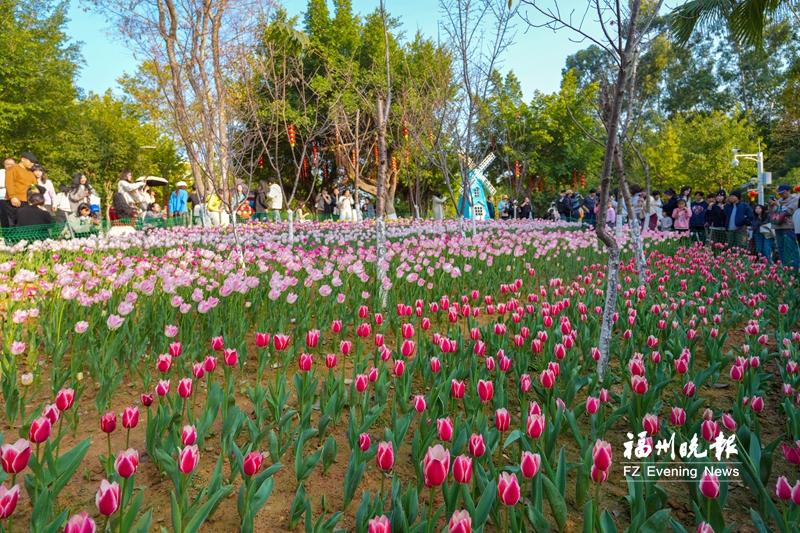 近日,福州市儿童公园清风园成为市民赏花的一大热点。位于公园东南门入口左侧50米处的花田里,7600余株郁金香在冬日的阳光下盛放,吸引了众多市民前来观赏、拍照。