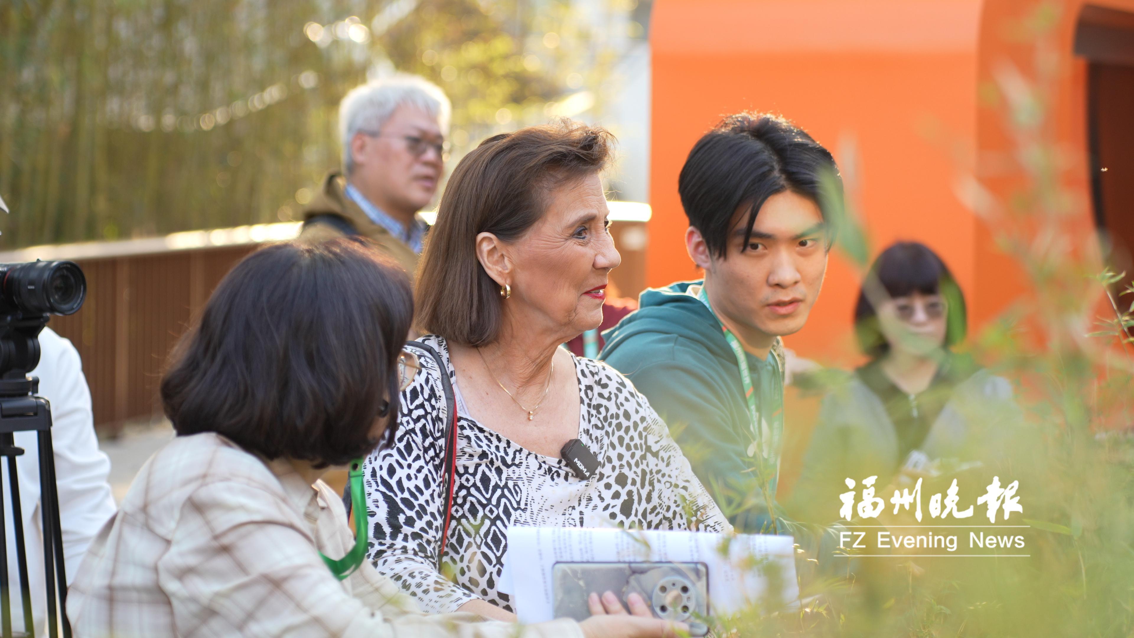 老朋友远道而来,修云芳当起了“导游”。一路上,她向乔治妮分享了5只大熊猫从成都来榕后的适应期趣事、保护大熊猫天性的丰容设计、贴近自然的模拟栖息环境。