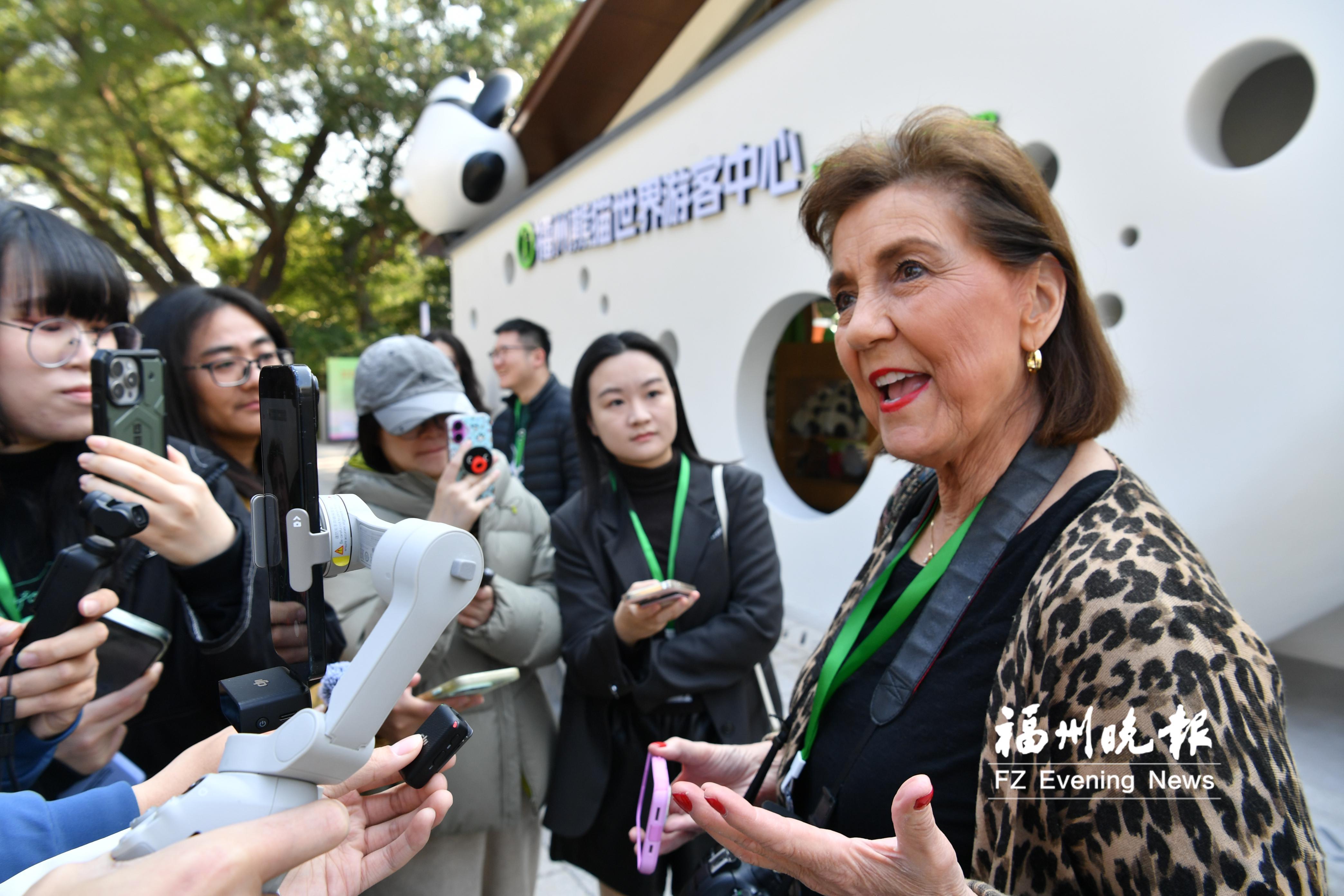 园区的一切都让乔治妮印象深刻。她一会儿用相机拍摄憨态可掬的大熊猫,一会儿用手机记录精彩画面,手机、相机在她手中交替使用,显得十分忙碌,“我喜欢这里错落有致的样子,我认为这是在自然的环境中展示它们。这里堪称大熊猫的‘完美家园’”。与此同时,园区随处可见的艺术装置和优美的自然风光,让乔治妮相信,升级改造后的福州熊猫世界可以给人们带来奇妙的大熊猫观赏体验。