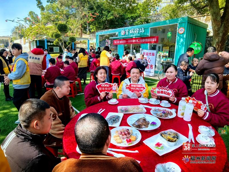 福州新闻网2月4日讯(记者 潘温祥)2月4日正值立春,年味渐浓。当天中午,在福州市第二社会福利院内,一场以“情满二福院 福聚满堂欢”为主题的新春团圆饭活动暖意开席。这是该院与福州市爱心人士连续第十二年携手为孤残服务对象举办的年夜饭活动,热气腾腾的佳肴、欢声笑语的团圆,让这个寒冬浸润在温情之中。