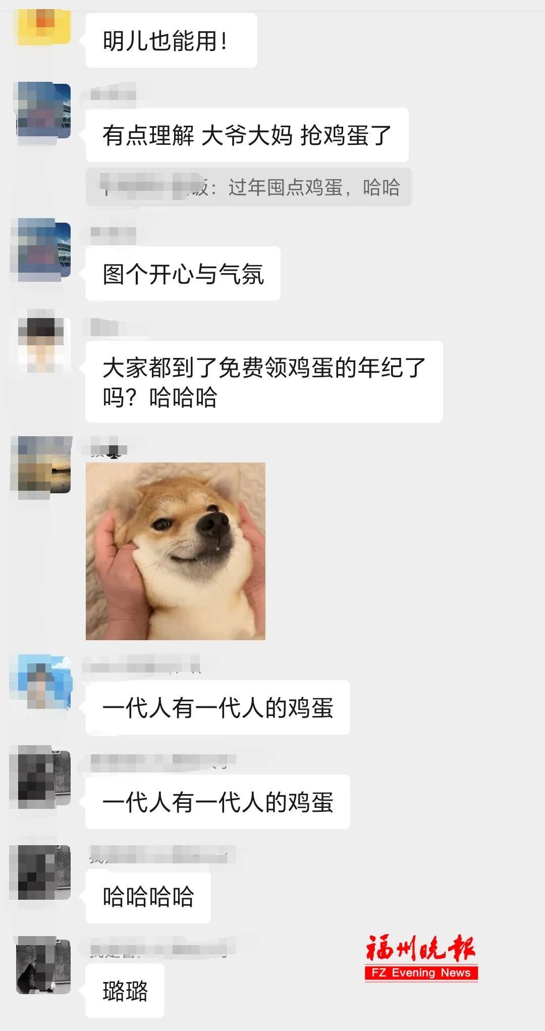 “一代人有一代人的鸡蛋……”今天一大早,在福州软件园工作的顾女士看着周围埋头抢红包的同事,笑着说:“有点理解大爷大妈在超市门口排队抢鸡蛋了”。