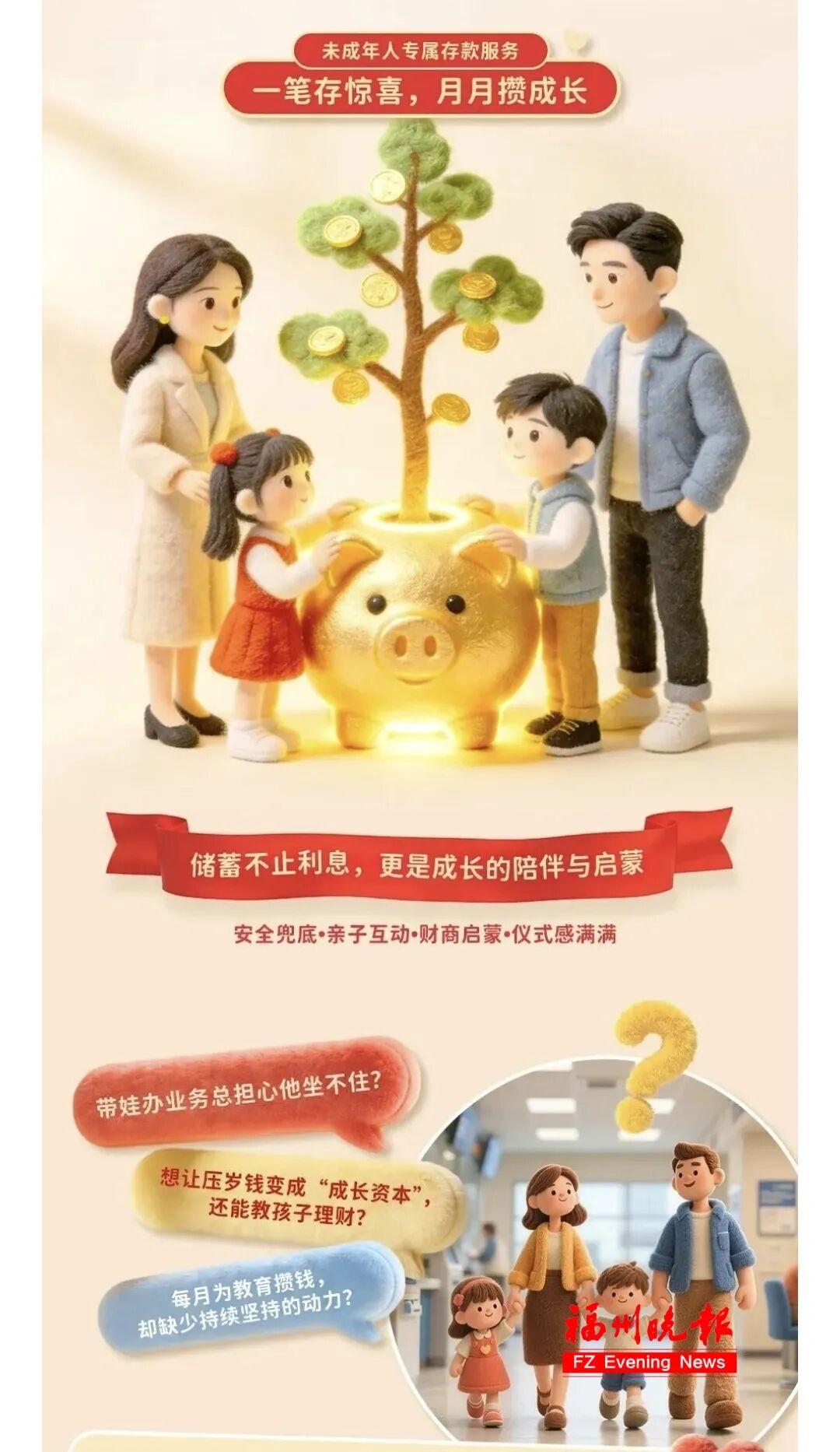 面对2026年春节后的压岁钱理财季,福州各大国有银行、商业银行纷纷出招,不仅推出了利率优于普通定存的专属产品,更将目光投向了保险、基金定投等中长期配置,试图从小培养孩子们的财商,同时锁定家庭长期收益。