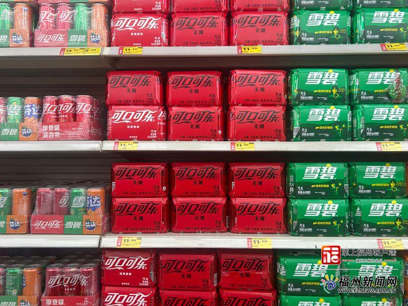 超市摆放的无糖饮料。