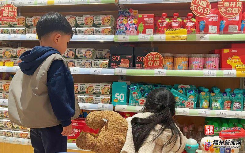 一家母婴超市显著位置摆放了零糖零食。
