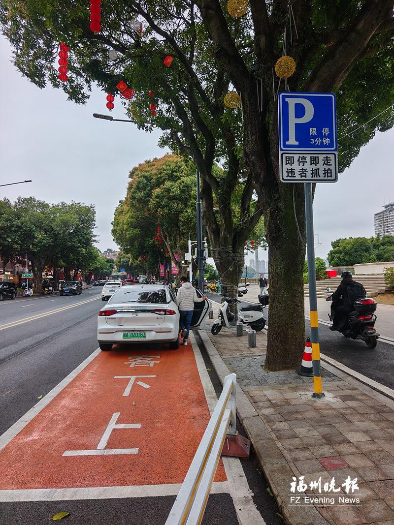 记者25日在现场看到,新增设的8处上下客通道设于烟台山片区周边的仓前路及南江滨西大道沿线的道路两侧,主要位于梅坞路口、仓前公园路段及爱情岛入口等点位,以醒目的橘黄色为主色,标有白色“上下客通道”字样,这些通道限时停车3分钟。