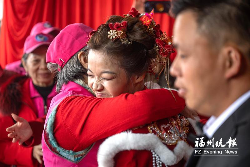 陈国强也是永泰人,他穿着西装,胸口别着红花,有点紧张。“他我早就见过,是个特别憨厚老实且身体健全的小伙子。”余英说,两人经媒人介绍认识,相互扶持,已经恋爱多年。