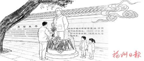我们循着指引牌走向闽江畔,那是吴石将军雕像所在之地。记忆中,雕像与石碑背后曾立着高高的围墙,将江景与人群隔绝开来,添了几分冷清。如今,围墙已拆除,一片开阔的广场展现在眼前,站在这里,可一眼望见滔滔闽江与横跨江面的螺洲大桥,江风拂面,视野开阔,心中也豁然开朗。我们特意买了鲜花,敬献在吴石将军雕像前。雕像上的将军目光坚毅,身姿挺拔,仿佛在凝望这片他深爱着的土地,那份赤诚的家国情怀,穿越悠悠岁月,依旧令人动容。广场上,两个小朋友正认真地录播缅怀吴石将军的作品,稚嫩的声音里,满是崇敬。那一刻,我忽然懂得,英雄的精神从不会因时光流逝而褪色,反而会代代相传,生生不息。