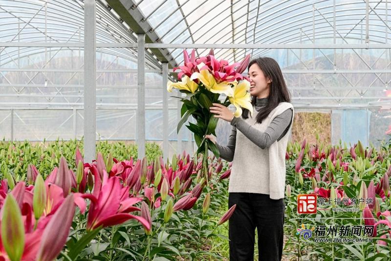 花香也引来了八方客。记者采访时,不时有游客穿梭在花田间,体验采摘的乐趣,也有不少花店的老板专程赶来选花。“3枝才12元,这性价比太高了,能做一大束花,而且自己亲手摘的,感觉更新鲜!”一位正在采摘的市民笑着说。江立燊介绍,这批百合均为观赏性鲜切花,于去年国庆前后播种。为了拓宽销路,基地正通过富闽协作展示馆推介、对接周边花店供货、推出采摘体验活动等多种方式,一步步打响新坡村百合的品牌。