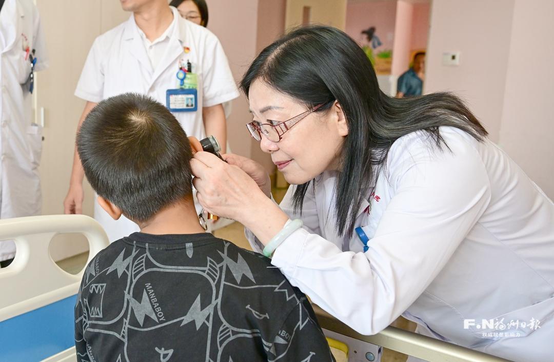 沈翎正在给患儿检查耳朵。