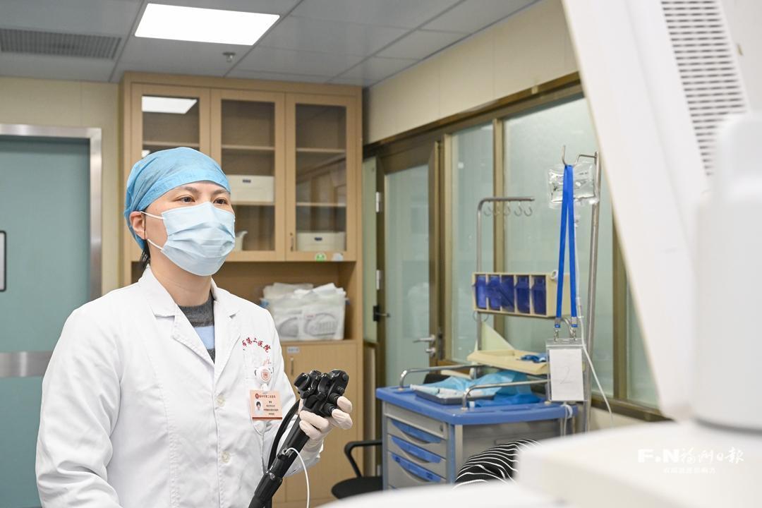 正午12点,在福州市第二总医院消化内镜中心,刚刚完成一台手术的曹雯摘下在脸上留下深深印痕的口罩,匆匆扒拉了几口午饭,便再次“全副武装”进入手术室。