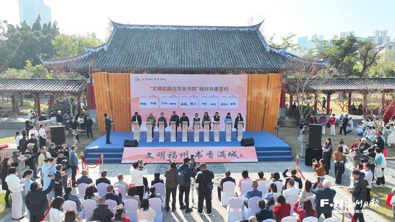 第二十届福州读书月“文明实践与文化书院”结对共建签约现场。记者 叶诚 摄