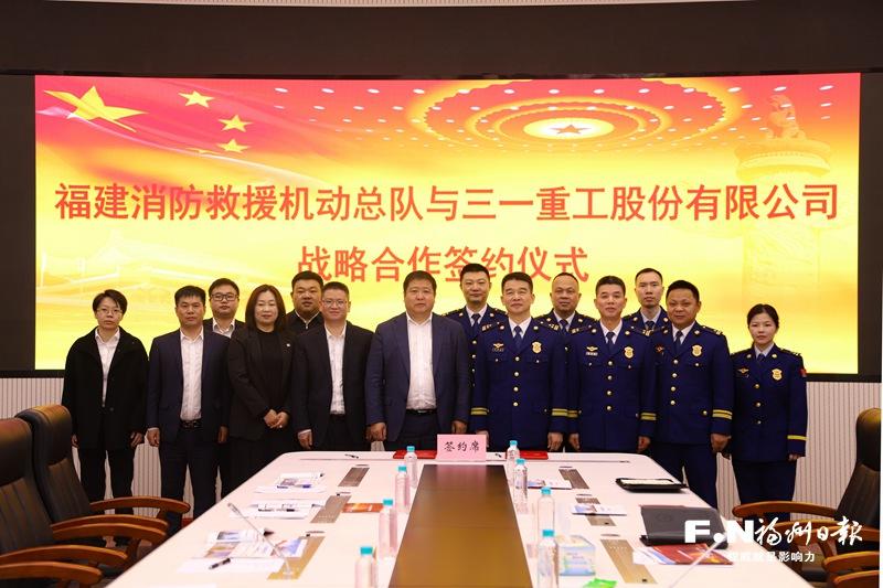 福建消防救援机动总队与三一重工签署战略合作协议。(受访单位供图)