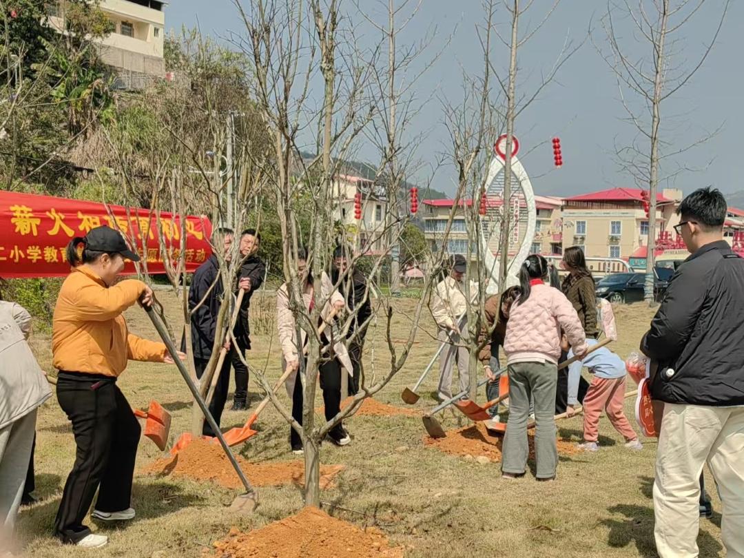 3月7日,春光明媚,二附小教育集团党团队师生代表走进雄江镇,与梅雄村联合开展“携手共建生态林 同心共育文明树” 义务植树活动。活动现场,师生与村民分工协作、默契配合,挥锹铲土、扶苗定根、围堰浇水,每一道工序都一丝不苟,一棵棵新苗在春光中挺立,成为校地共建的生动见证。活动中,二附小教育集团与梅雄村共同设立植树共建点,进一步深化校地合作情谊。师生纷纷表示,此次实践活动让大家在劳动中感悟初心使命,在协作中凝聚奋进合力。