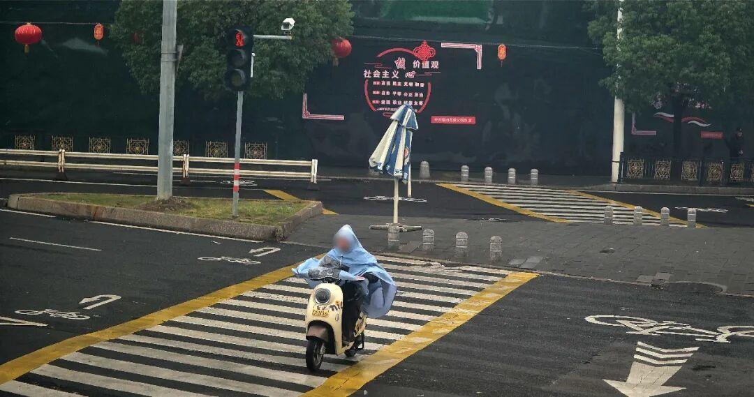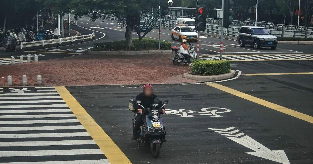 斑马线不是电动自行车闯红灯的“护身符”,再着急,见红灯亮起,也要耐心等待。