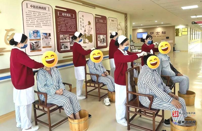 老人体验“五线梳头法”和“中药沐足”等中医特色护理。(省三院供图)