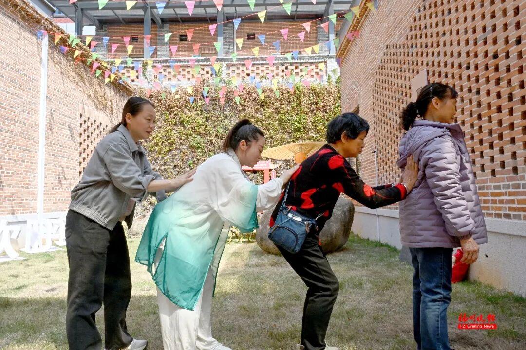 拍打操教学区,大家跟着节奏拍打穴位,活络筋骨。