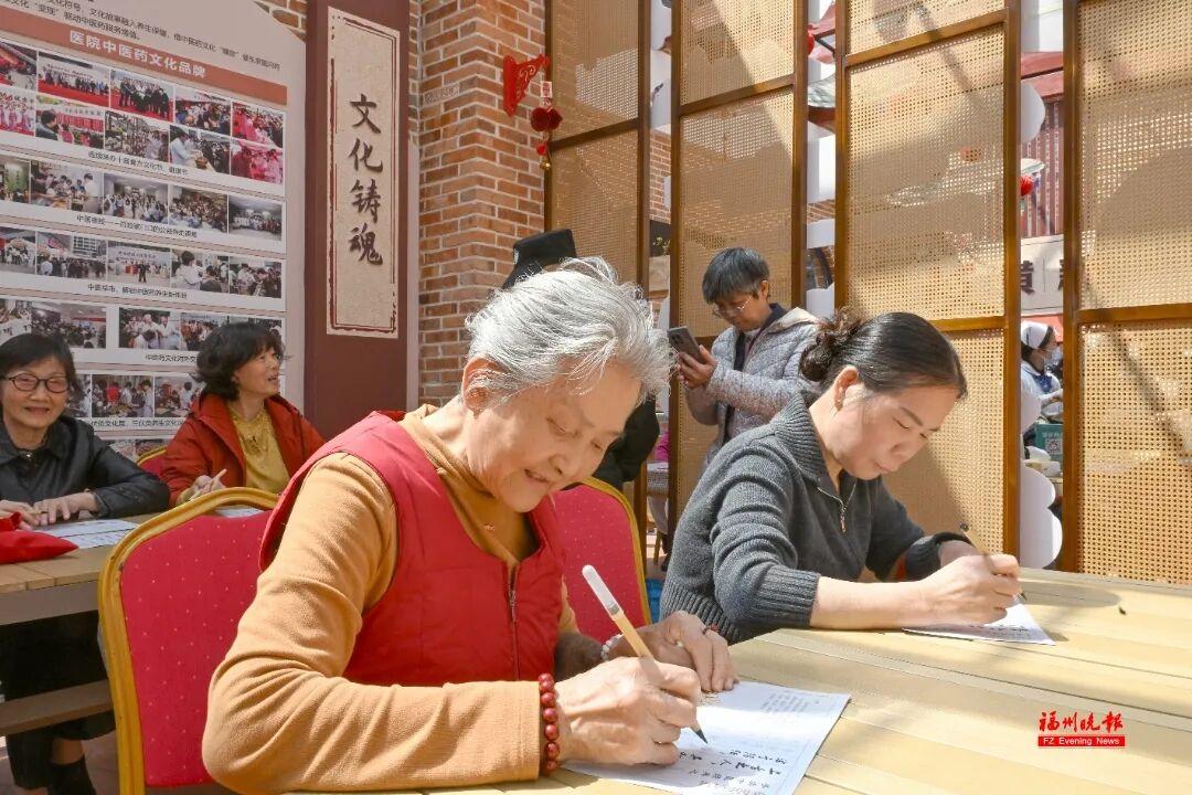 “手读中医经典”区,老人们挥毫泼墨,在书写中感受中医文化的魅力。