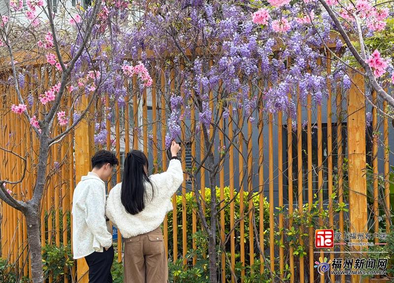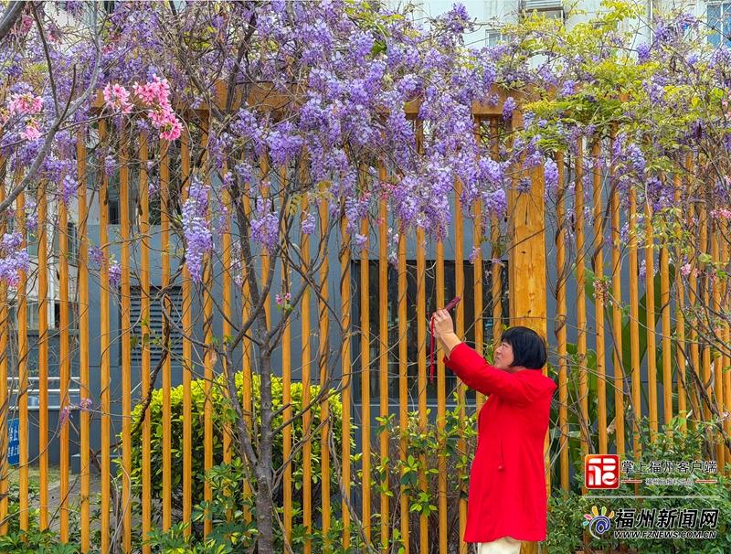 在不少游客眼中,紫藤代表了优雅和浪漫。一名来自泉州的游客告诉记者:“我来福州出差,一出地铁就看到这么艳丽的繁花,心情也放松了很多。”