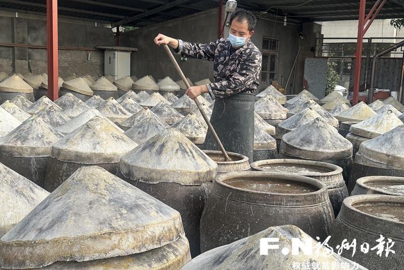 作坊不大,几口沉实的虾油缸静静安放,釉色古旧,酿着醇香,也酿着岁月。桂清叔正蹲在缸边忙碌,看见我们,忙放下手中的工具迎上来,话不多,先露一笑。他的虾油制作技艺已列入长乐区非遗代表性项目名录。那香气,不飘不散,是沉下来的——咸鲜醇厚,一闻便知,是时光慢慢浸润出的味道。
