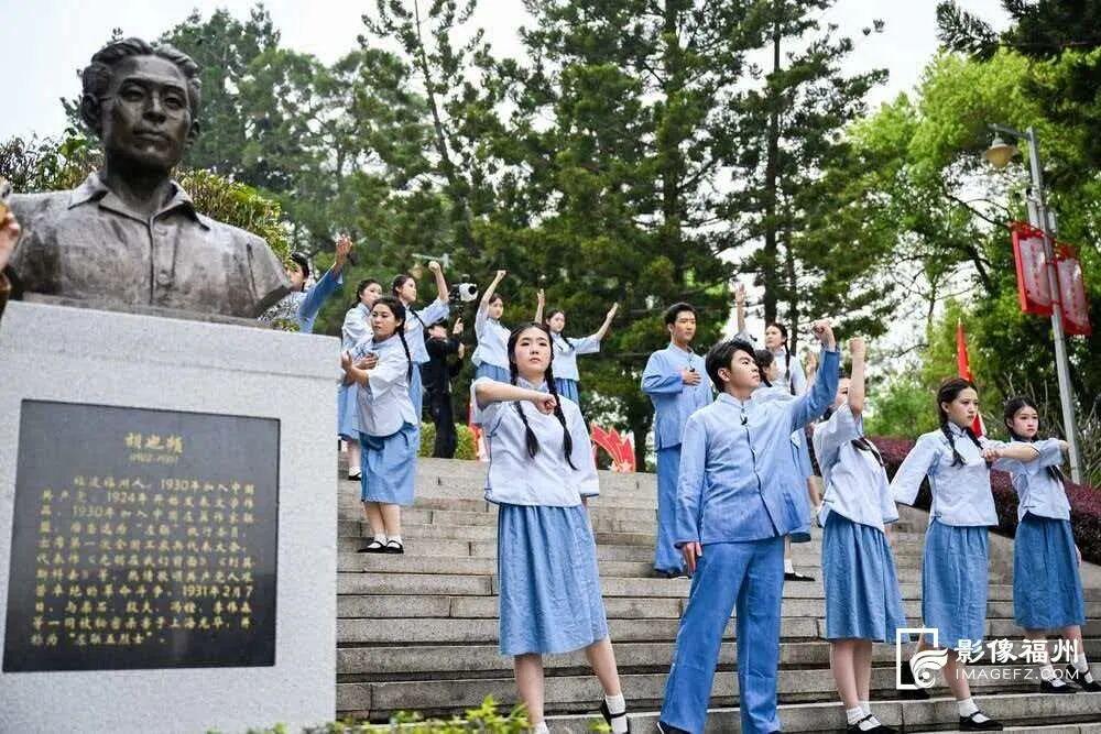 随后,实景演绎沿着福州市革命英烈纪念园中轴线徐徐展开。整个演绎以时间为轴、以精神为脉,将百年奋斗史凝练为“觉醒寻路”“铁血铸魂”“丹心报国”“复兴圆梦”四个篇章,层层递进。