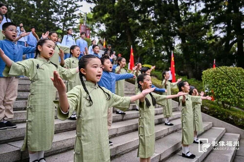 ▲榕城大中小学学子们参加活动祭拜英烈 池远/摄