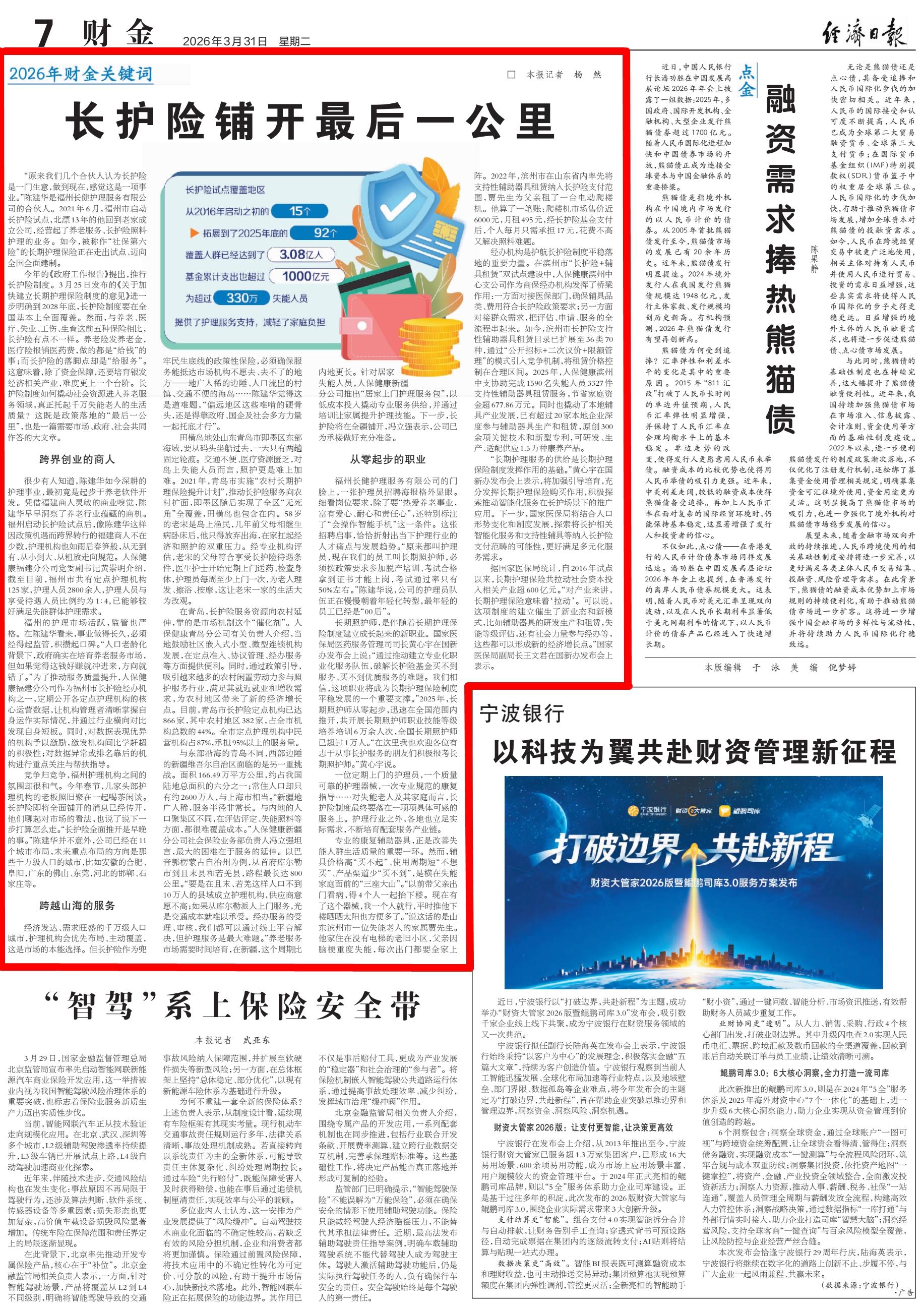 今年的《政府工作报告》提出,推行长护险制度。3月25日发布的《关于加快建立长期护理保险制度的意见》进一步明确到2028年底,长护险制度要在全国基本上全面覆盖。然而,与养老、医疗、失业、工伤、生育这前五种保险相比,长护险有点不一样。养老险发养老金,医疗险报销医药费,做的都是“给钱”的事;而长护险的落脚点却是“给服务”。这意味着,除了资金保障,还要培育银发经济相关产业,难度更上一个台阶。长护险制度如何撬动社会资源进入养老服务领域,真正托起千万失能老人的生活质量?这既是政策落地的“最后一公里”,也是一篇需要市场、政府、社会共同作答的大文章。