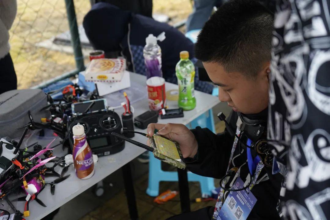 尽管选拔赛当天天气寒冷还伴随着阴云小雨,但选手们的参赛热情分毫不减,在竞速赛中,只见选手们从容地操作着无人机穿越一个又一个赛道障碍,以极短的时间完成飞行任务,而在足球赛中,选手们凭借无线电遥控技术,对装载有精密球形外筐的无人机进行细腻而精准的操控,上演了一场场扣人心弦的高空对决。