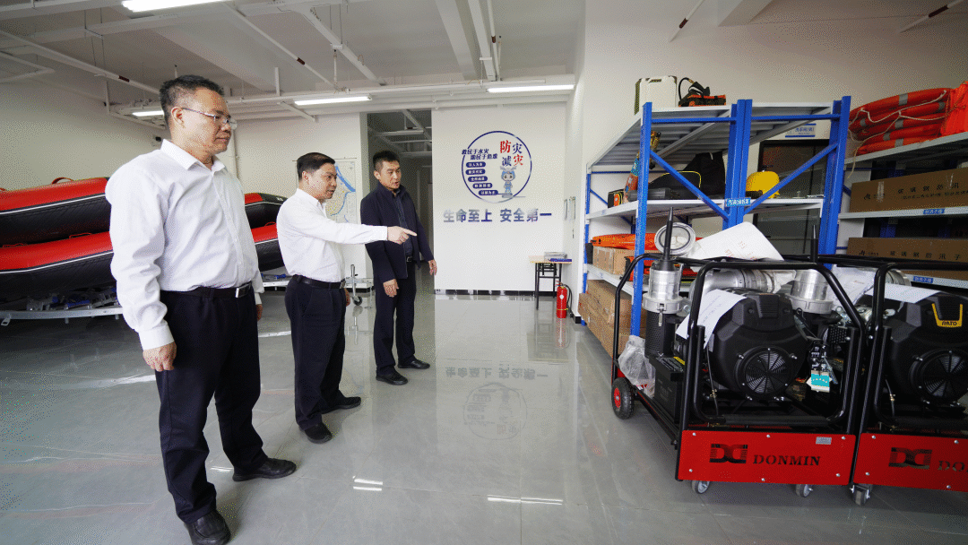 应急物资储备是迅速有效应对汛期的基本保障。在区应急物资储备站,李贵勇、林勉建实地检查移动泵车、冲锋舟、救生衣等应急物资储备情况,了解抽水泵、发电机等装备器材管理维护情况,要求加强应急救援队伍建设,强化防汛抢险应急演练,全力以赴打好防汛备汛主动仗,确保实现安全平稳度汛。