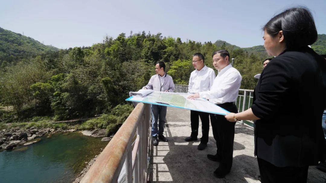 ▲李贵勇、林勉建察看良浩水库防汛备汛情况