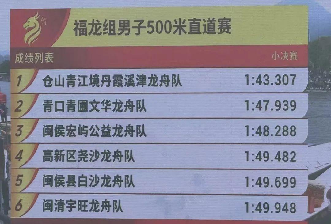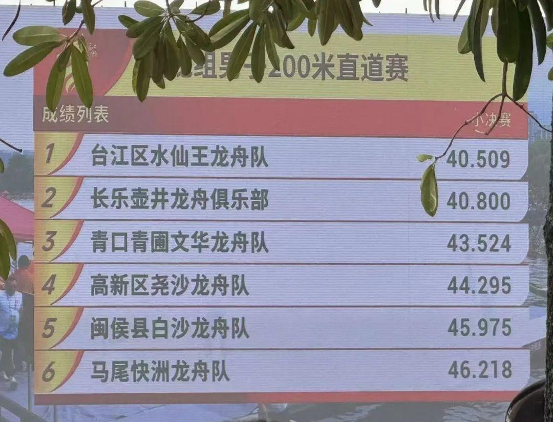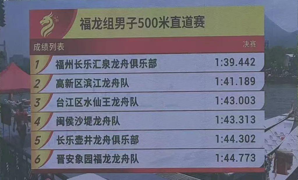 高新区尧沙龙舟队在福龙组中获得200米、500米直道赛及总积分第十名!