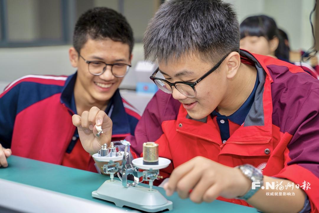 福州市耀华高级中学学生在课堂上做实验。(校方供图)
