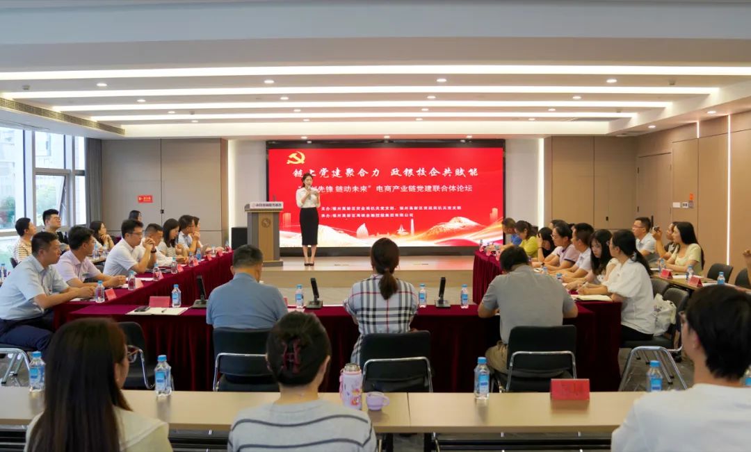 为深化党建引领电商产业链高质量发展,强化政银校企协同创新,25日下午,由福州高新区财金局、资规局机关党支部联合闽江学院国际数字经济学院、高新区各银行及园区各电商企业党支部共同主办的“云创先锋 链动未来”电商产业链党建联合体论坛在高新区科创金融服务基地成功举办。