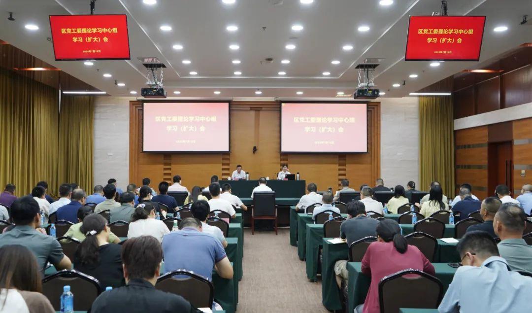 区党工委委员熊国华主持会议,区党工委理论学习中心组成员,区各基层党委负责人,区直各职能部门及事业单位、南屿镇、村镇办副科级以上干部,区属各企业副总以上干部等参加。