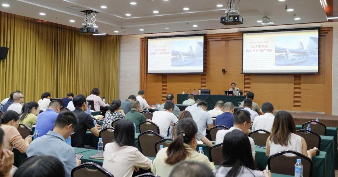 福建省文化和旅游厅副厅长、省文物局局长傅柒生应邀到会,作题为《领悟习近平文化思想 保护好历史文化遗产》的专题辅导。报告围绕“文物涵义是什么”“文物资源有什么”“文物保护做什么”等三个方面,系统阐述文化遗产保护的相关知识与思想举措,对全区进一步做好历史文化遗产保护传承工作具有很强的指导意义。