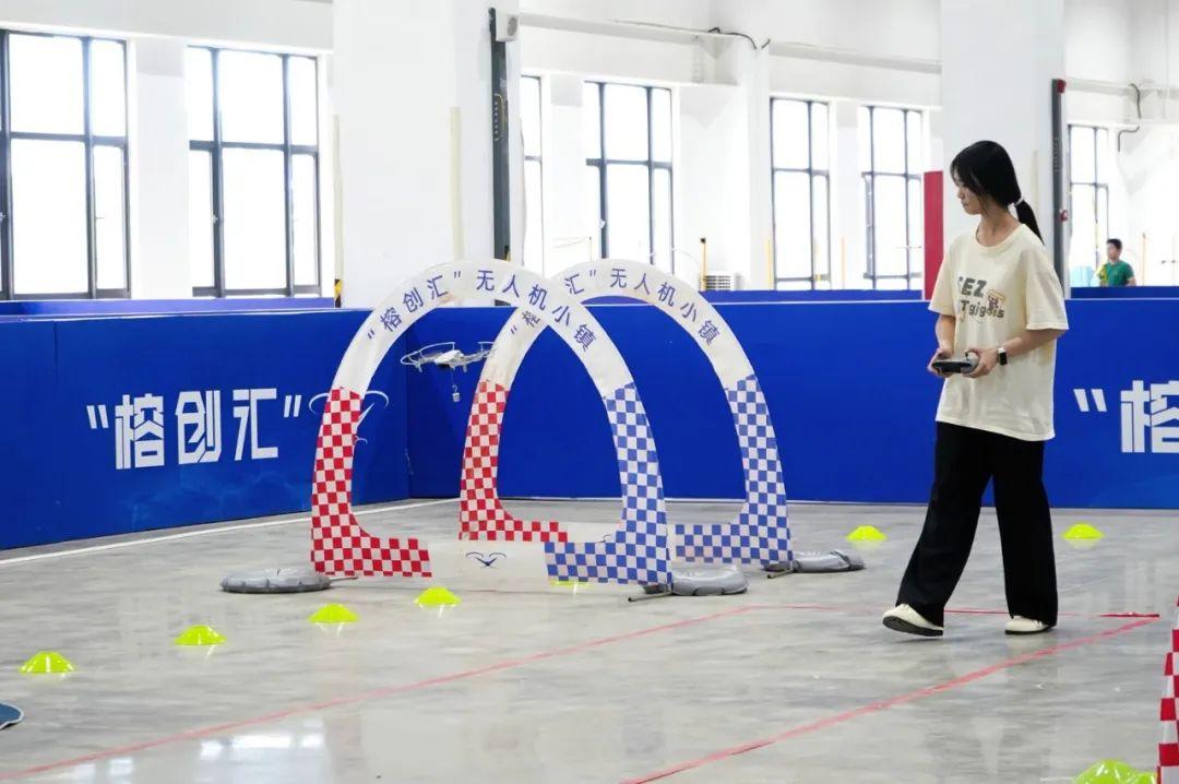 现场,选手们全神贯注地操作无人机在障碍间灵活穿梭,充分展现了创新能力和探索精神。