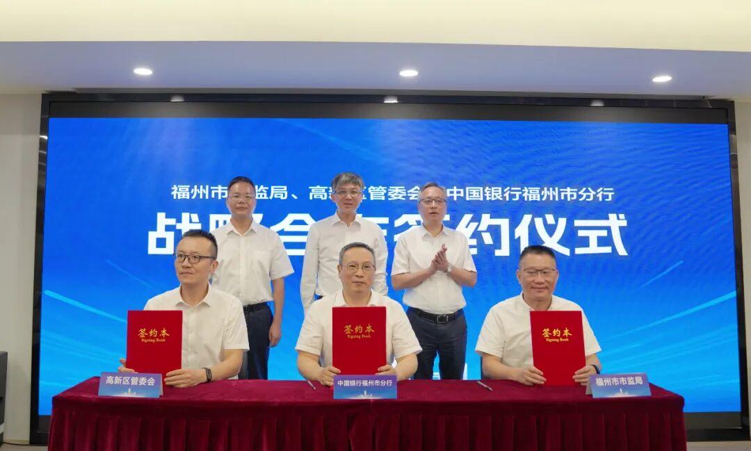 在签约仪式上,福州市市场监督管理局、福州高新区管委会分别与中国银行福州市分行签署战略合作协议,福州高新区海峡金控集团与中国银行闽侯分行签署战略合作协议。