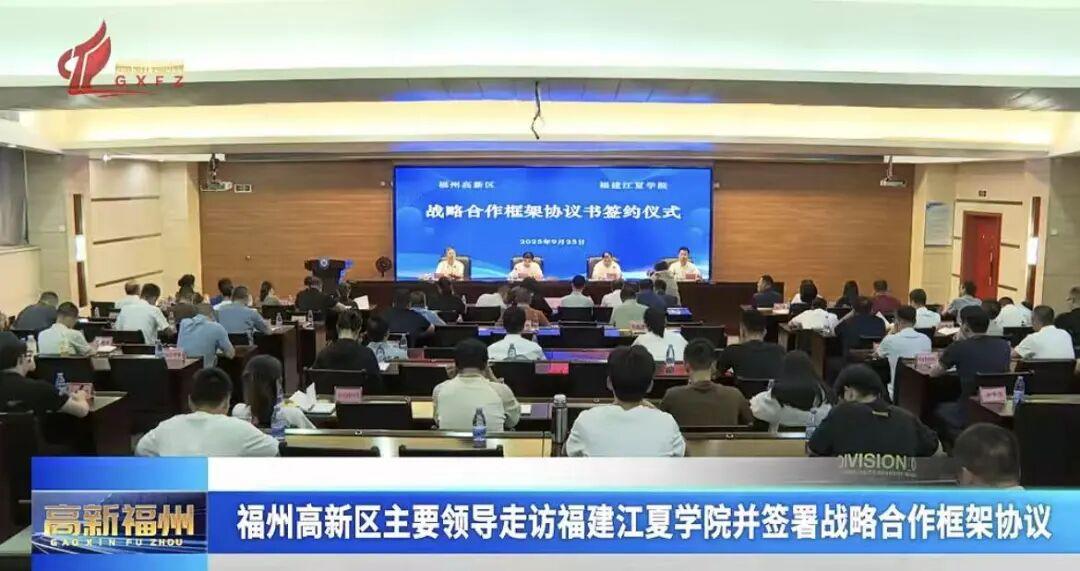 25日,福州高新区党工委书记李贵勇一行走访福建江夏学院,与学院党委书记凌启淡、校长魏远竹座谈,并举行战略合作框架协议签约仪式。