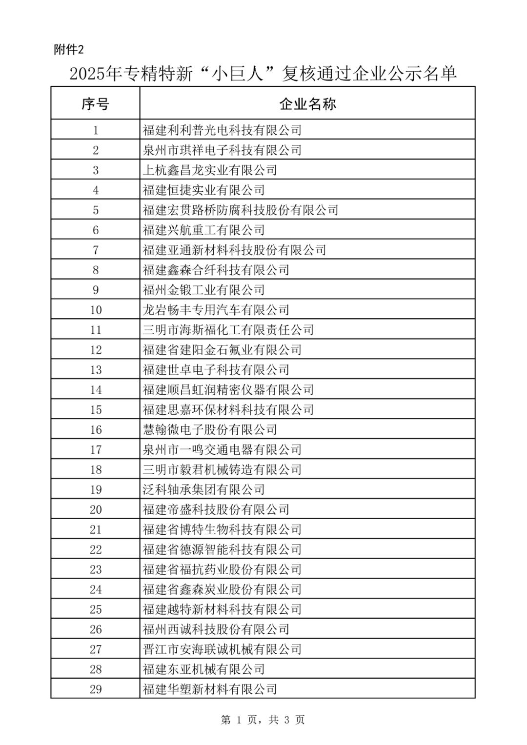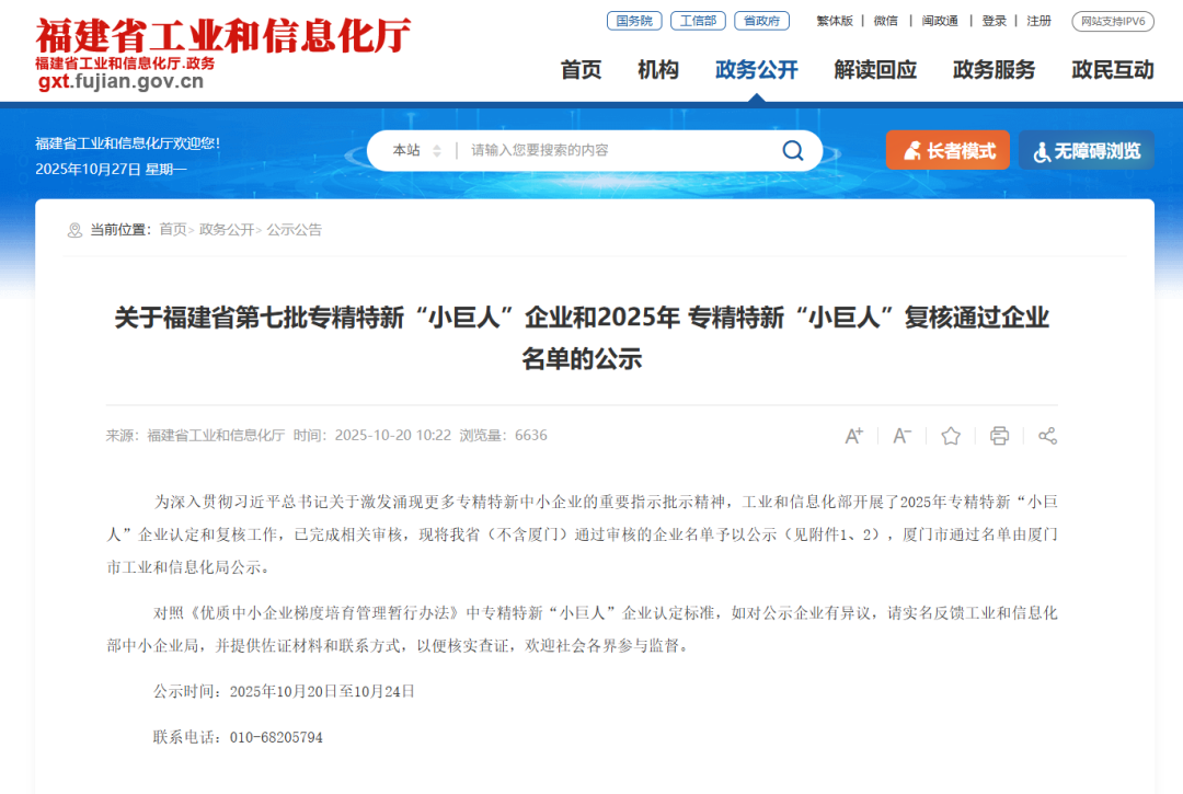 近日,福建省工业和信息化厅发布关于福建省第七批专精特新“小巨人”企业和2025年 专精特新“小巨人”复核通过企业名单的公示。
