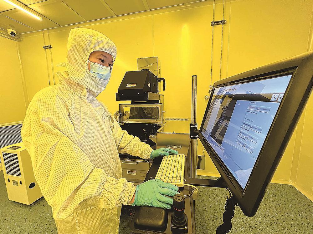 在先进信息光电子芯片及应用技术研发支撑平台里,2000平方米的千级洁净室内,身着防护服的工作人员在精密仪器间忙碌,一台台光电子芯片制造设备正精准刻画光子传输轨迹。“依托这一平台,我们成功突破核心技术,实现了高端光电子芯片的自主可控研发与制造。”苏辉团队的陈景源博士指着设备介绍。
