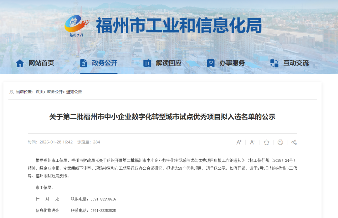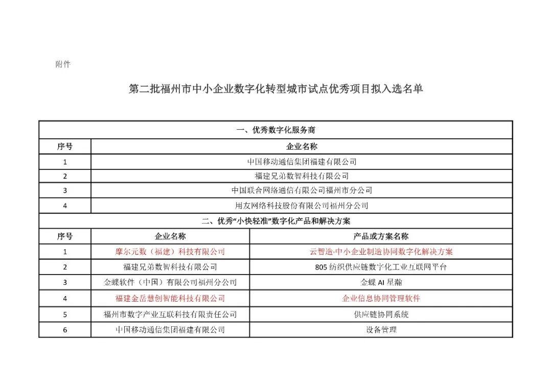 近日,福州市工业和信息化局公示了第二批福州市中小企业数字化转型城市试点优秀项目拟入选名单。