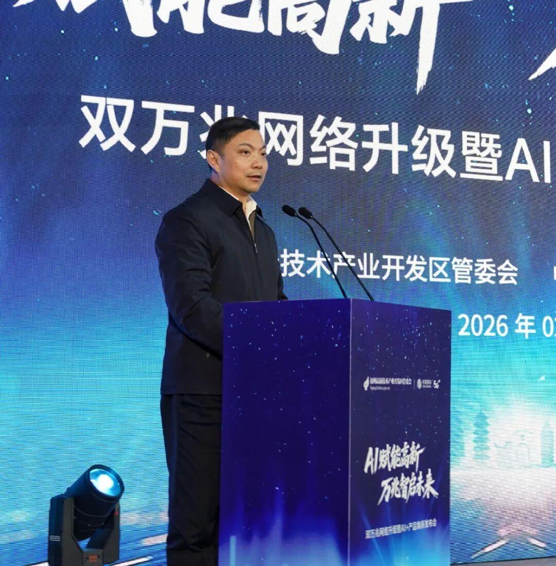 活动现场,与会嘉宾共同启动“双万兆”网络升级装置,象征着高新区正式启用具备超高速率、超低时延、高可靠性的新一代信息基础设施。该网络将有效支撑工业互联网、远程智控、XR沉浸交互等前沿应用,为区域产业数字化转型提供关键支撑。