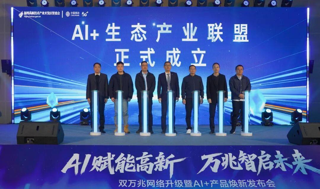 随后,现场举行了“AI+生态产业联盟”成立仪式。联盟汇聚中兴通讯、永福电力、博思软件、睿能科技、隆恒同威科技、仙芝楼生物科技等重点企业,以及中国移动等产业链关键伙伴,致力于构建“产学研用”协同的创新联合体。联盟将聚焦AI关键技术攻关、共性平台搭建与应用场景共创,加速人工智能与双万兆网络在智能制造、智慧园区、数字政务等领域的规模化落地。
