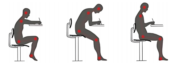 正确的坐姿能够使压力均匀分散到椎间盘和骨骼周围的肌肉组织上,对于预防和缓解健康问题至关重要。然而,长时间久坐很容易引起不良坐姿,导致压力不均匀地施加在椎间盘上,长期维持同一不良坐姿,可能引发腰椎间盘突出、脊柱侧弯、腰肌劳损等。